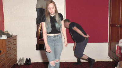 Hier ist ein sehr heftiges Trampling zu sehen, dass schon beim Zuschauen Schmerzen verursacht. Die Mistress hat Pumps an, die einen sehr spitzen Absatz haben, der sich tief in das Fleisch des Losers bohrt. Nach dem Trampling mit High Heels bekommt er noch eines mit nackten Füßen und zusätzlich ein Facetrampling. Hier stellt sich die Mistress auf seine Nase, dass man fast Angst bekommt, sie könnte brechen. Nebenbei springt die Mistress noch ein bisschen und tanzt. Ein sehr produktives Sklaventraining.